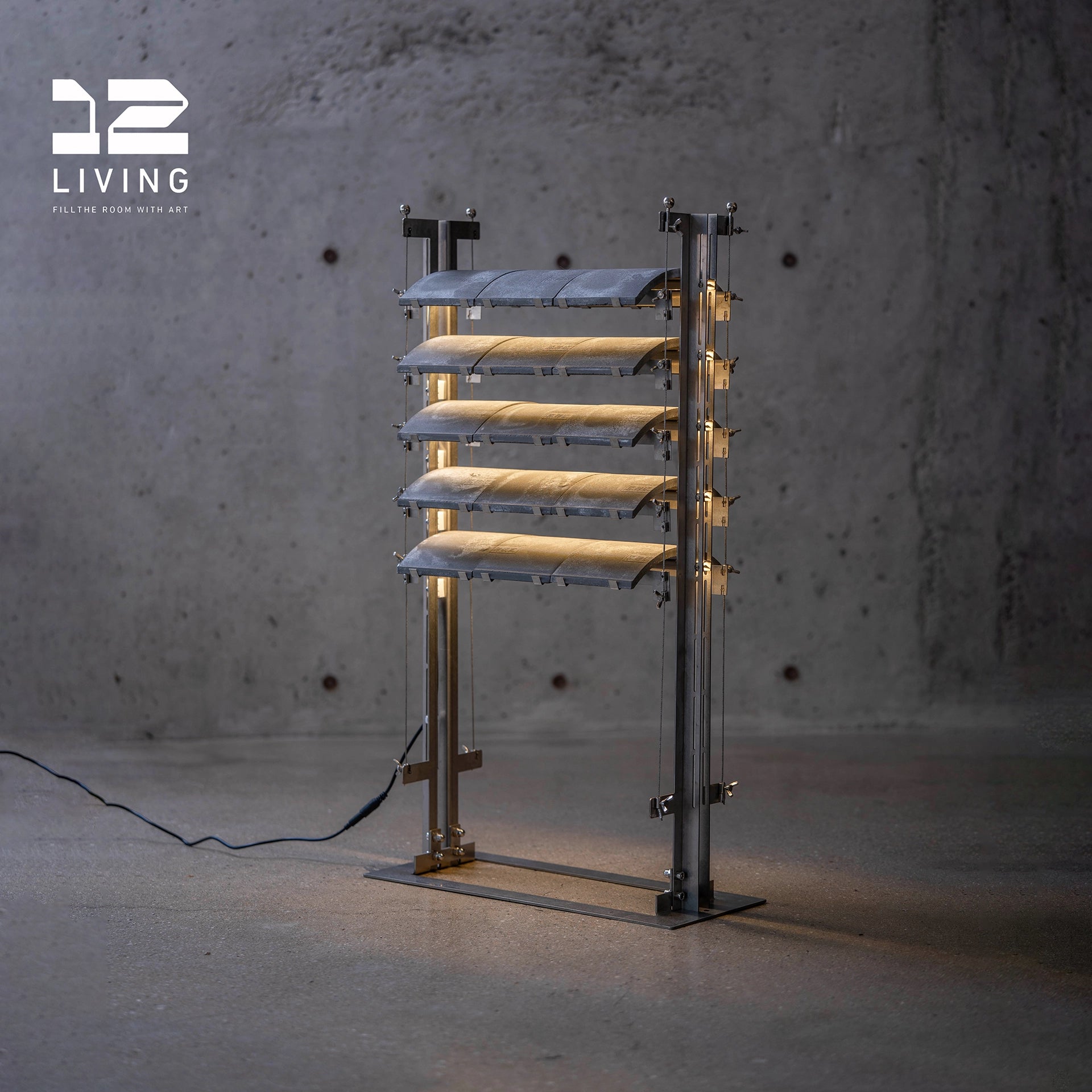 Inspired by the passage of time, the textured roof tiles of this floor lamp exude an ancient charm, while the smooth metal lines bring a contemporary flair. The meticulous craftsmanship in every detail enhances the mechanical aesthetics of the piece. A true masterpiece, this lamp stands as a memorable addition to any space, offering both style and functionality.